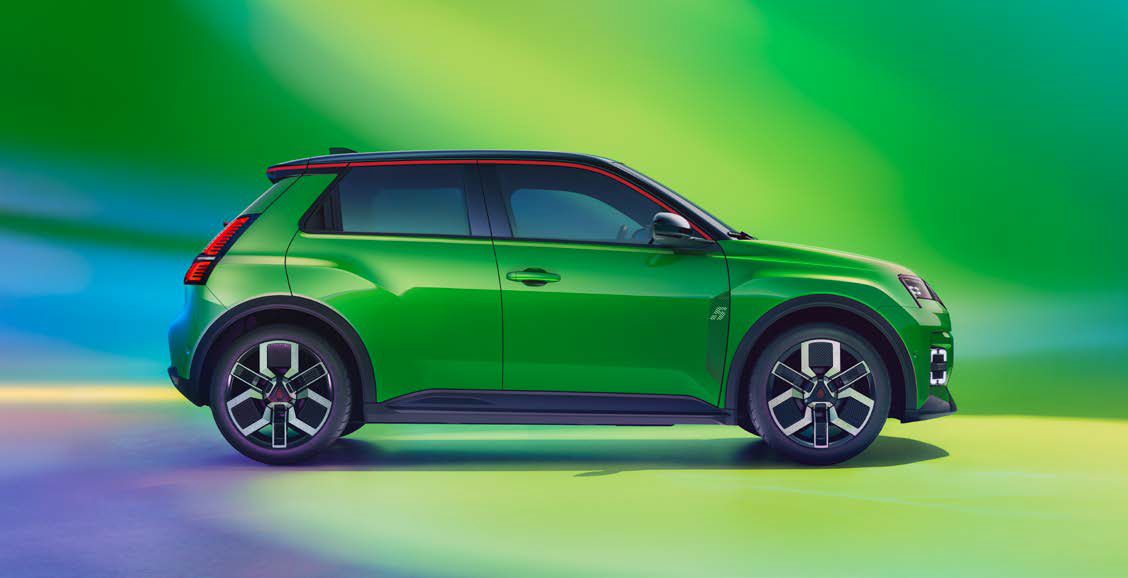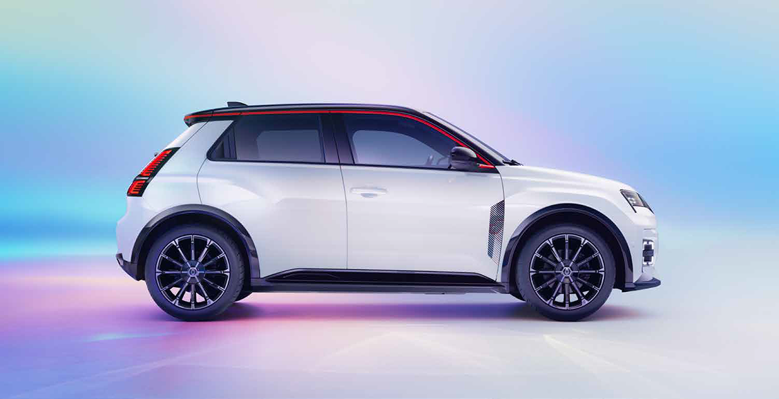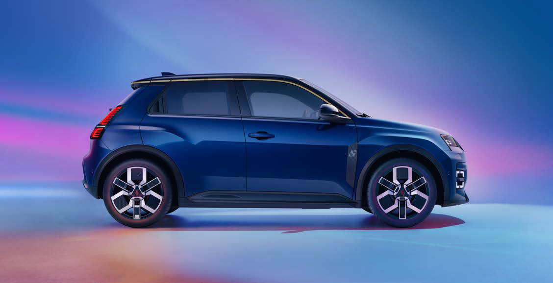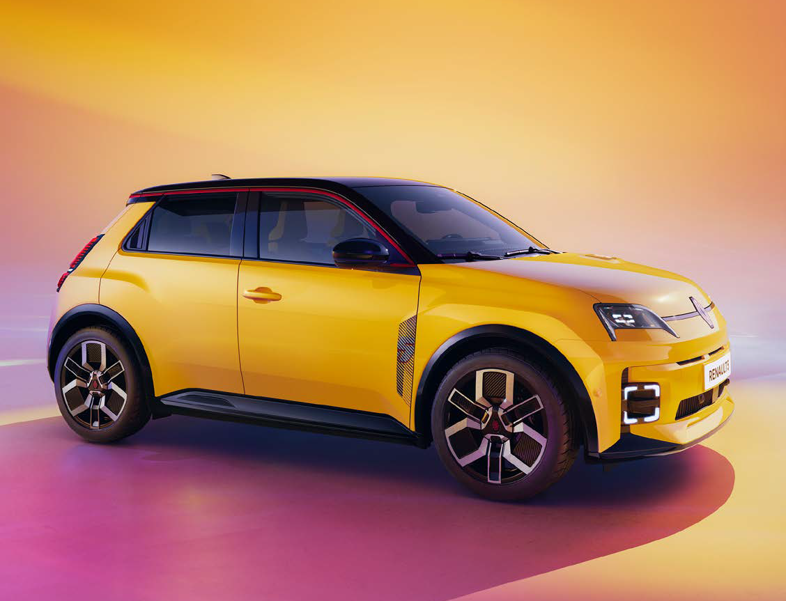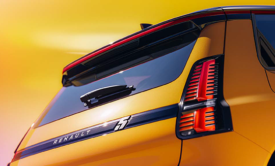 At the rear, the lights are vertically aligned, contributing to the Renault 5’s aerodynamic shape. Moulding marked with a ‘5’ emphasises the boot line, while the shark fin aerial punctuates the roof, which is edged with a contrasting roofline.