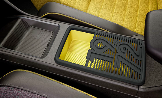 Your Renault 5 isn’t complete without our 3D accessories, printed in France, including centre console storage with multiple designs to choose from and the customisable e-pop shifter.