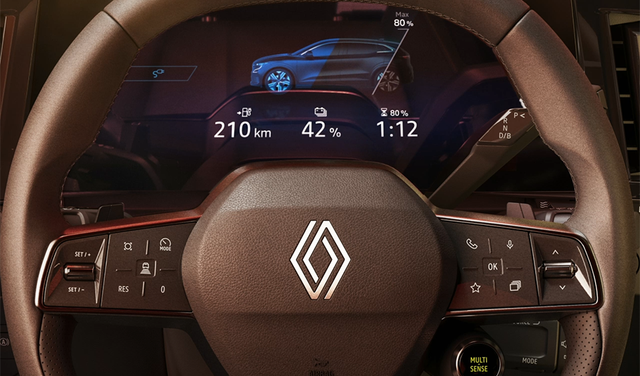 Thanks to the heat pump and one-pedal regenerative braking, you can optimise the Renault Megane‘s range while enjoying a smooth, pleasant ride. When you release the accelerator pedal, the vehicle decelerates smoothly to a complete stop, offering a pleasant, intuitive experience.